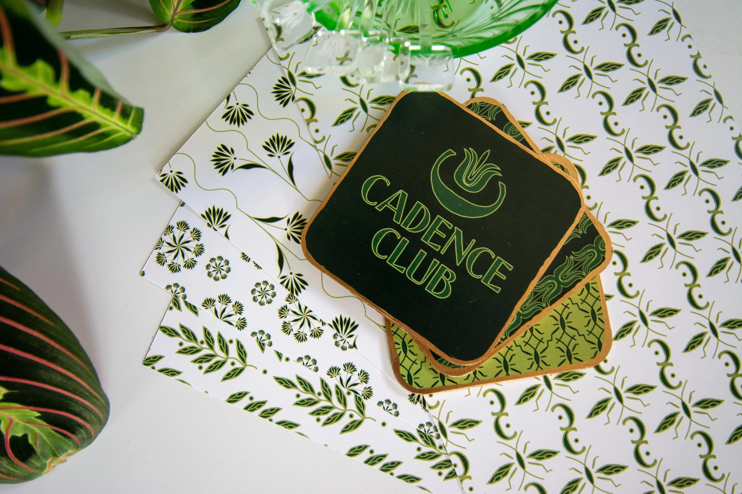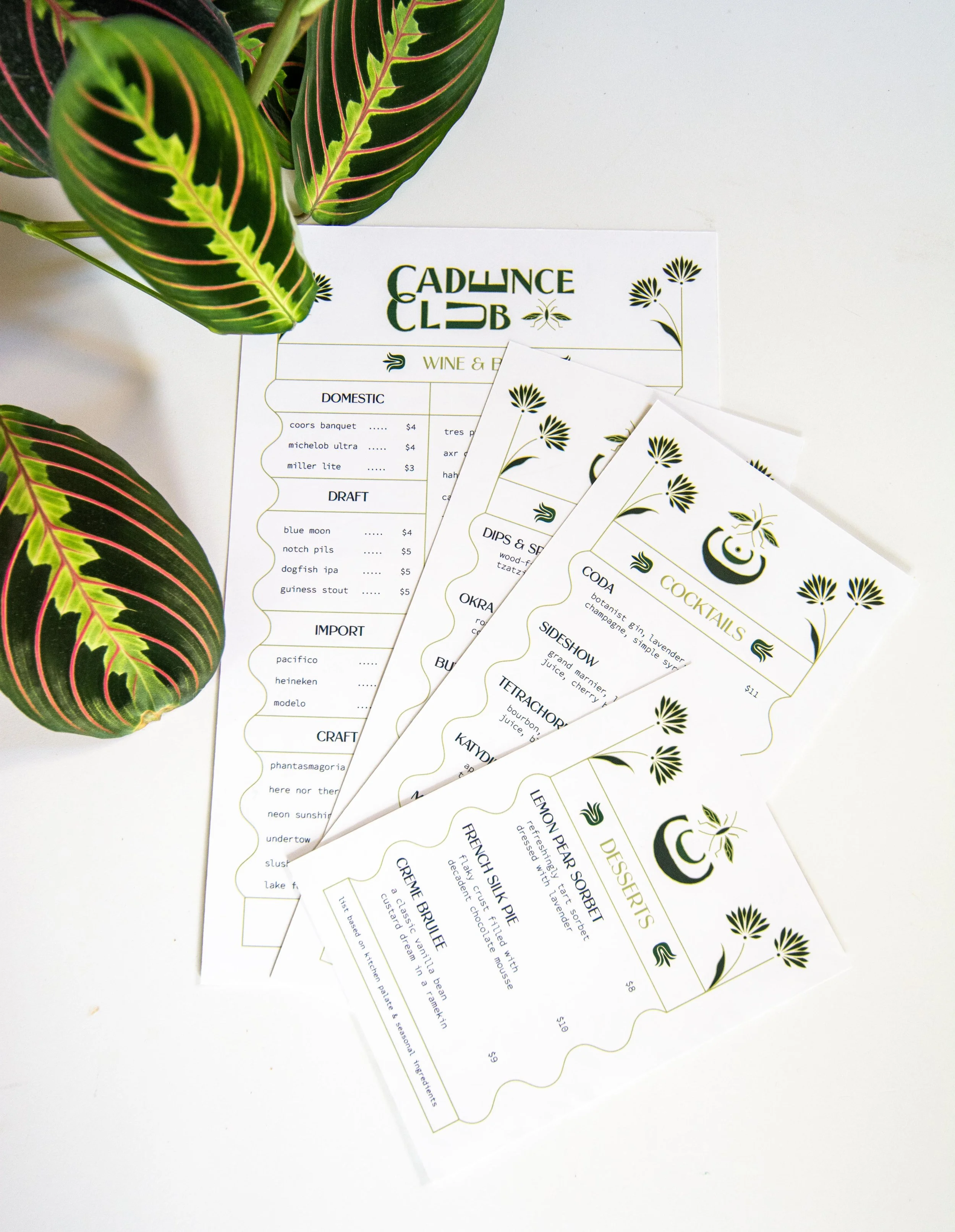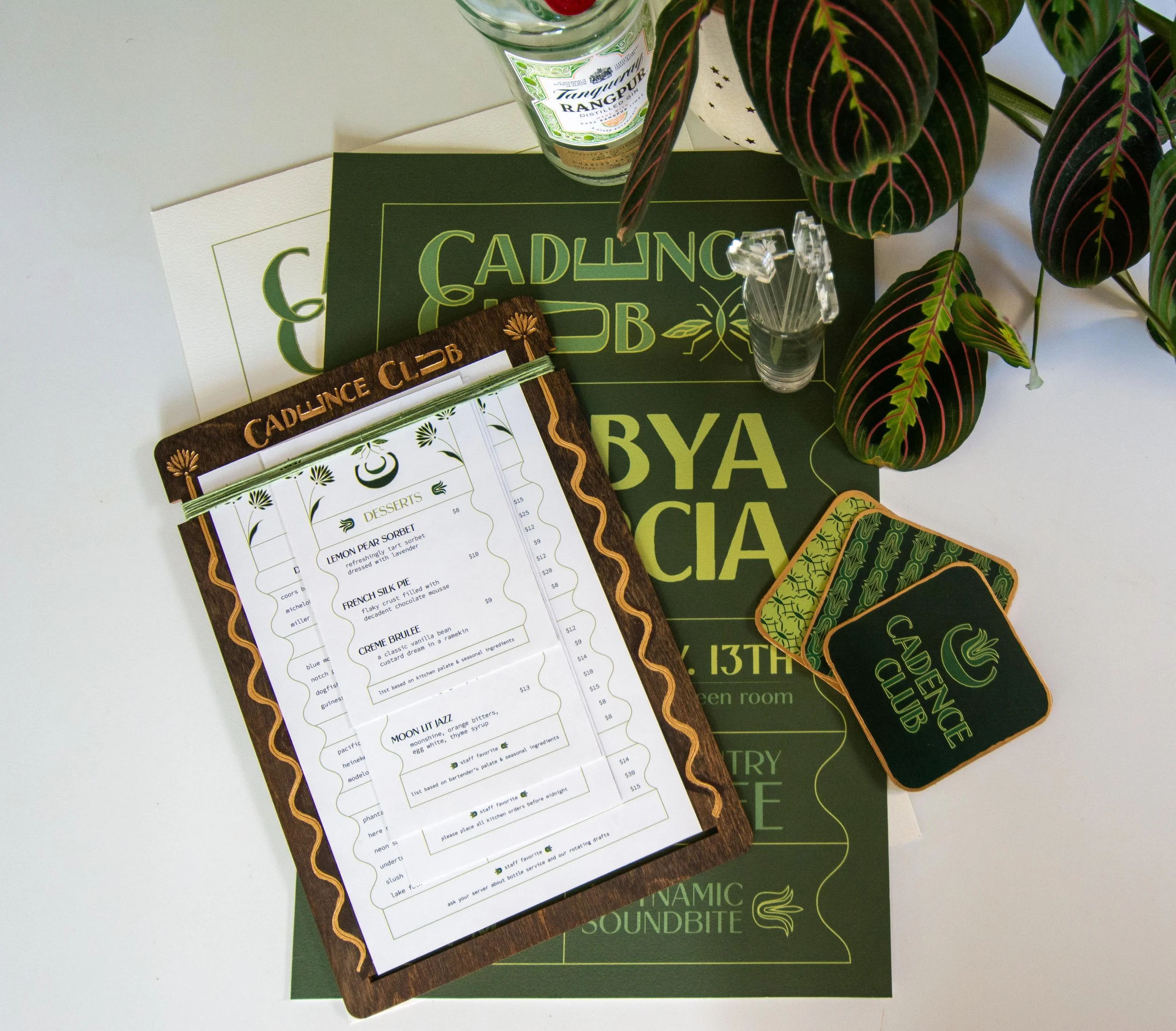 Branding for a jazz lounge inspired by the nature informed art nouveau style with the intricate forms of a katydid.