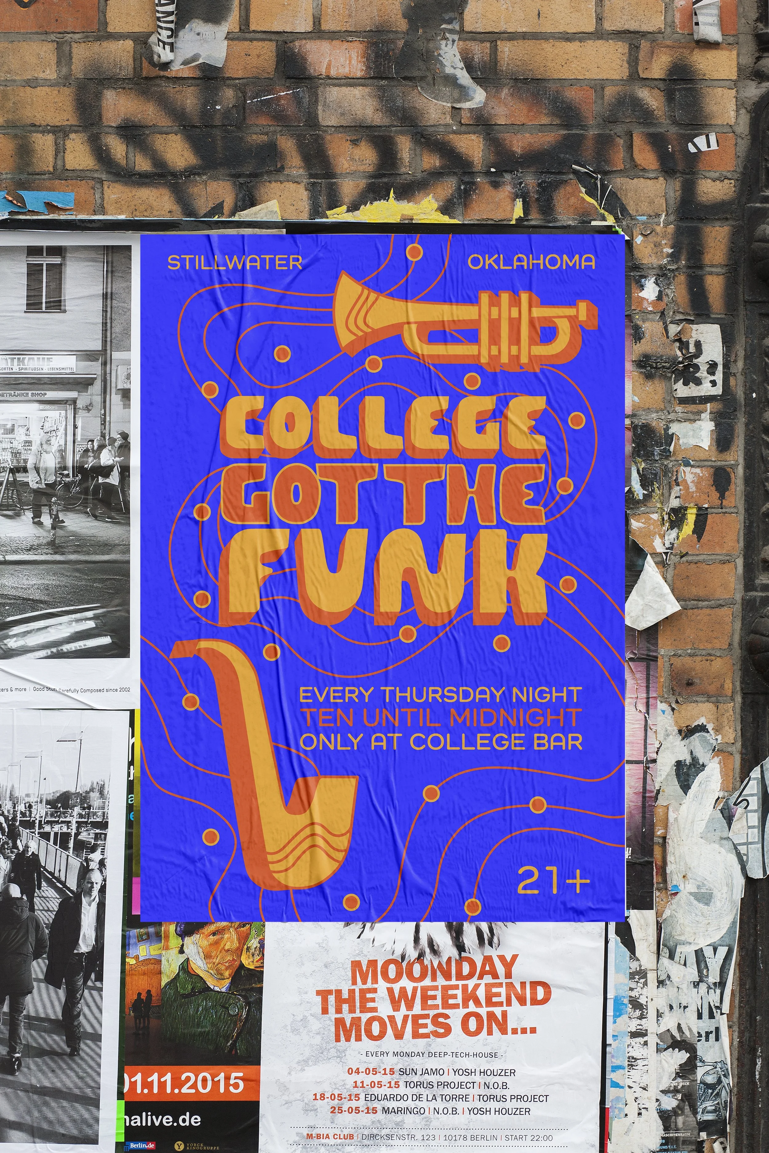 Working logo and merchandise for Funk N Beers in Stillwater, Oklahoma. Every Thursday night at College Bar, live Funk music, and $5.00 pitchers.